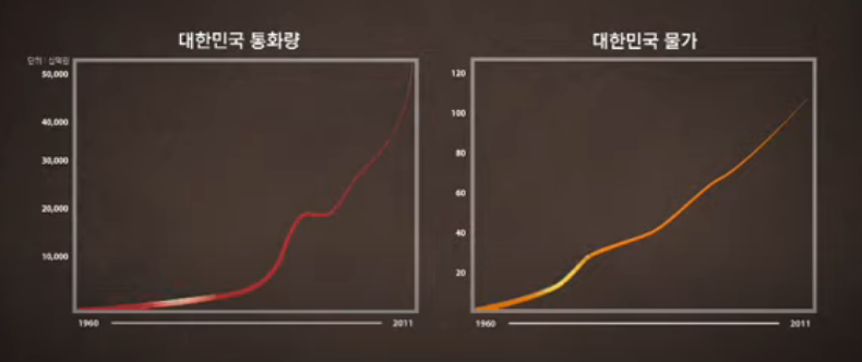 지난 50년간 어떻게 돈의 양이 늘어났는지, 왜 물가는 오르기만 했는지... (중략) 시도 때도 없이 신문에 오르내리는 양적완화, 통화팽창 이런 말들이 무슨 뜻인지 이젠 아셔야 될 겁니다.