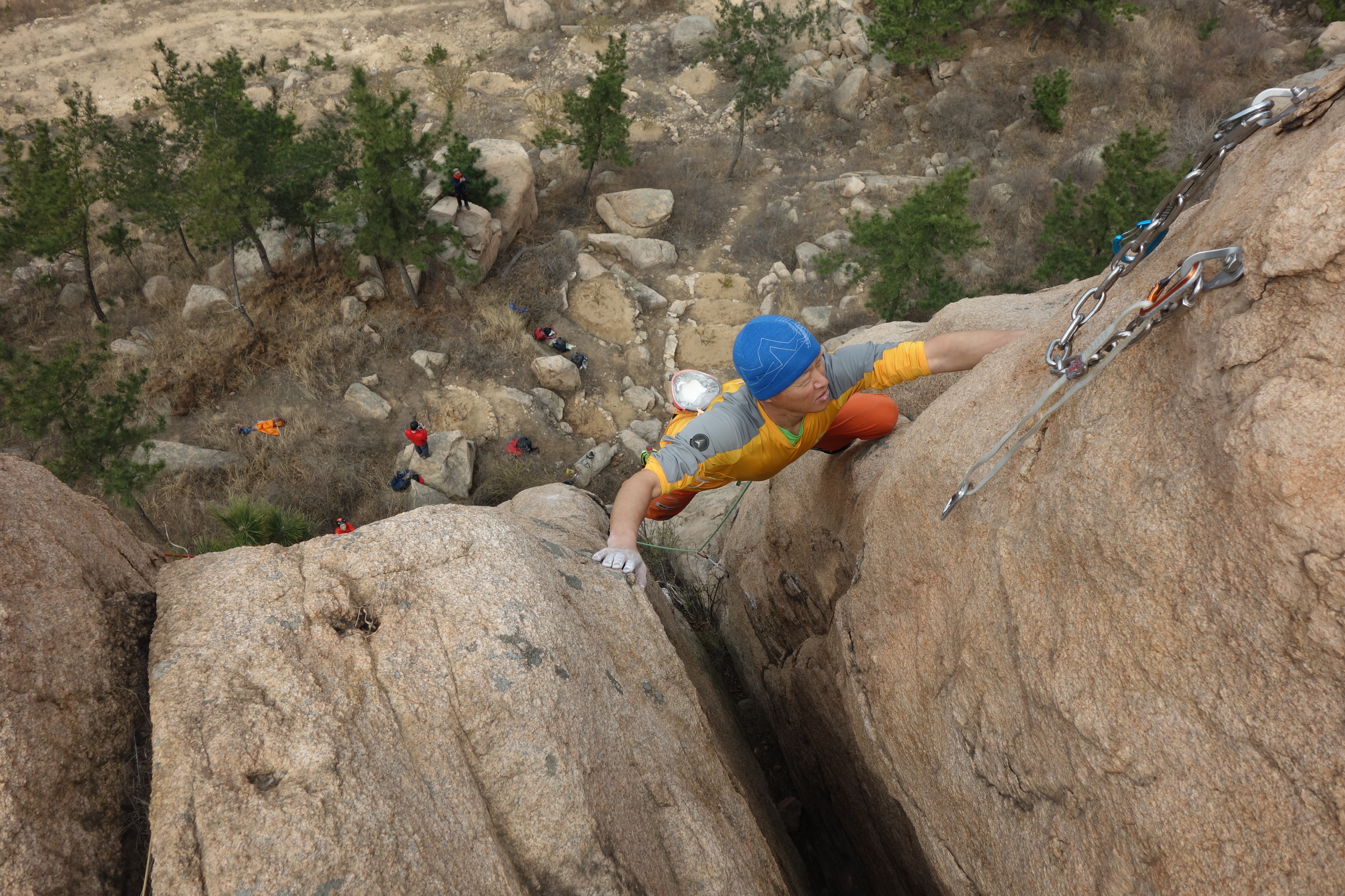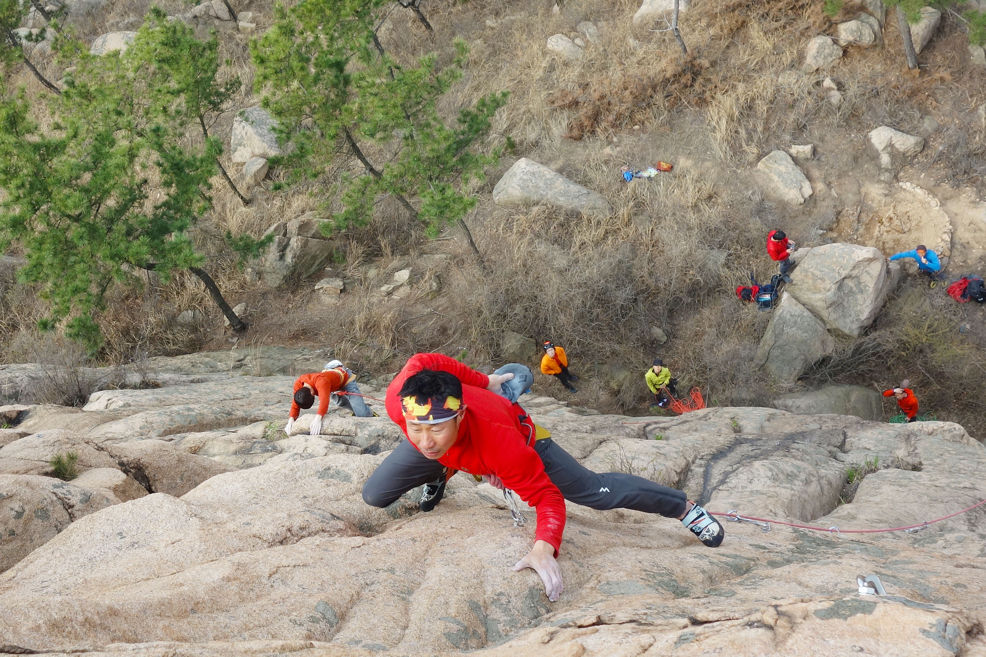 코오롱등산학교(교장 윤재학)가 지난 3월 29일부터 4월 2일까지 중국 청도(靑島)를 대표하는 명산, 노산(崂山, Laoshan)자락의 황산고(黃山崮, Huangshangu) 암봉에 두 개의 리지 코스를 개척했다. 황산고 암장은 산둥반도(山東半島)의 동서부에 위치해 있으며, 청도시에서 동쪽으로 약 30km 떨어져 있다. 이번 개척 등반에는 총 7명의 강사진(정준교, 최원일, 이기범, 전양준, 문성욱, 배대원, 양유석 교무)이 참여했으며, 김은희(정규반 61기)씨와 필자가 개척진의 말미에서 시험 등반으로 코스를 따라 올랐다.