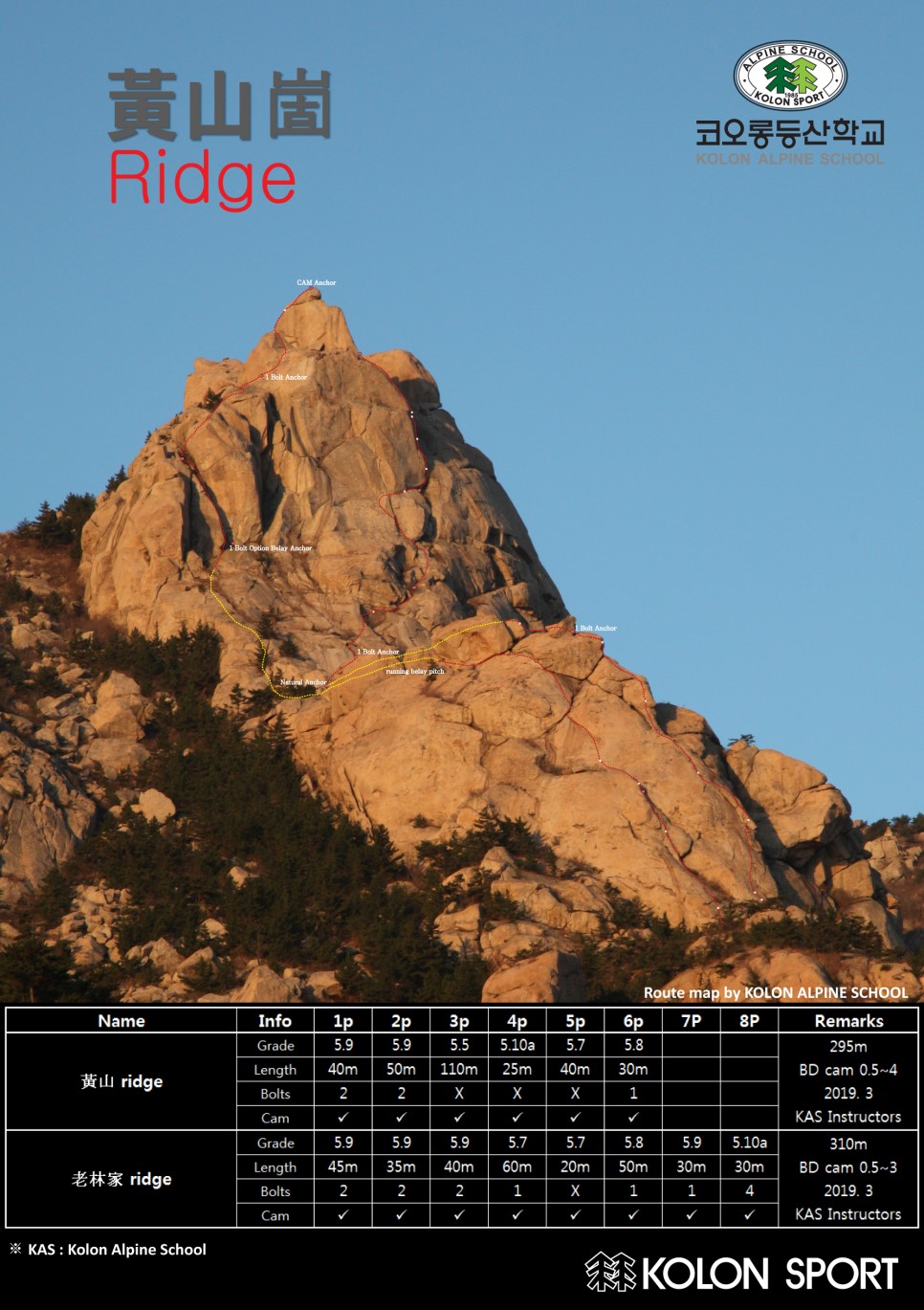 코오롱등산학교는 이번에 개척한 황산리지와 노림가 리지를 포함해 중국 청도 황산고 암장과 노산 일원을 등반하는 해외암벽반을 개설했으며, 1기 과정을 2019년 5월31일부터 6월6일까지 진행한다.