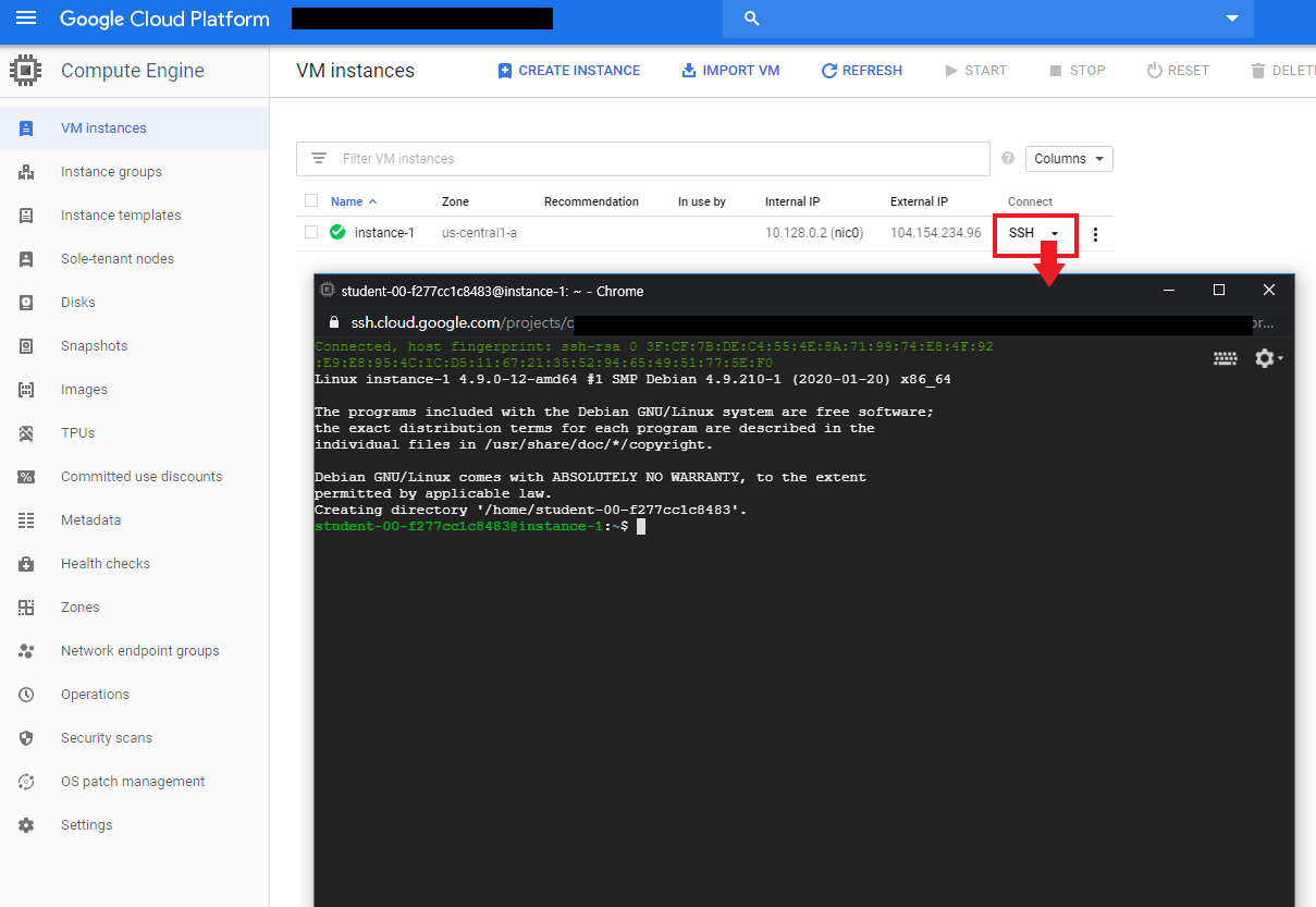 gcloud를 사용하여 SSH를 통해 인스턴스 연결