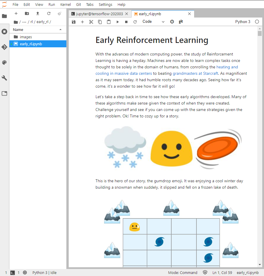5. 좌측 탐색창에서 training-data-analyst > quests > rl > early_rl > early_rl.ipynb 순서로 선택