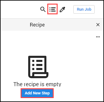 4. 페이지 오른쪽 상단의 recipe(레시피) 아이콘을 클릭한 다음 New step 추가 클릭