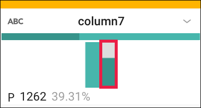 - column7의 히스토그램에서 두 개의 빈을 가리키면 'H'와 'P' 값을 갖는 빈 확인 가능