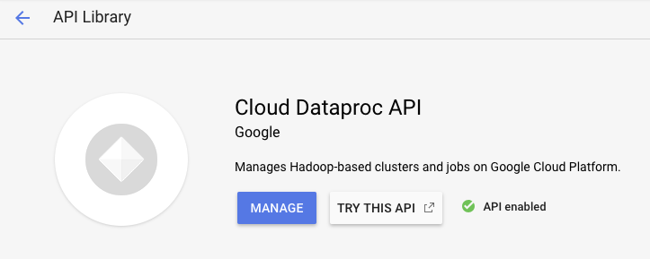 3. Cloud Dataproc API를 클릭하여 API 상태 표시