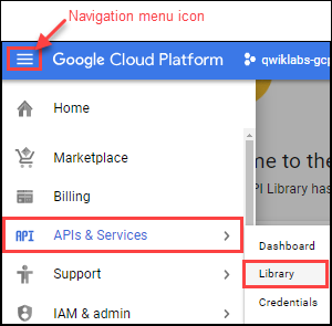 1. 탐색 메뉴 > API 및 서비스 > 라이브러리 클릭