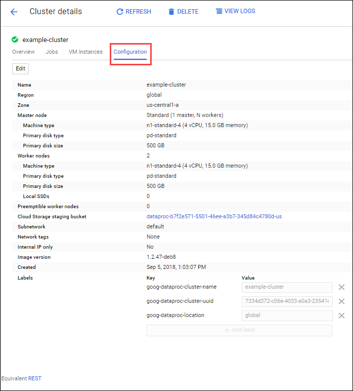 3. 구성을 클릭하여 클러스터의 현재 설정 표시