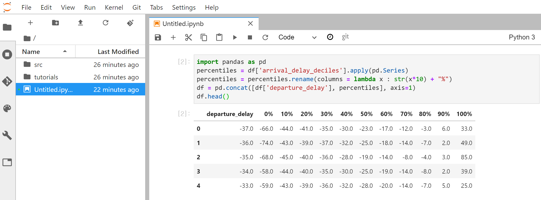 df = pd.concat([df['departure_delay'], percentiles], axis=1)