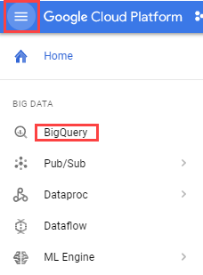 1. Navigation menu > BigQuery 클릭