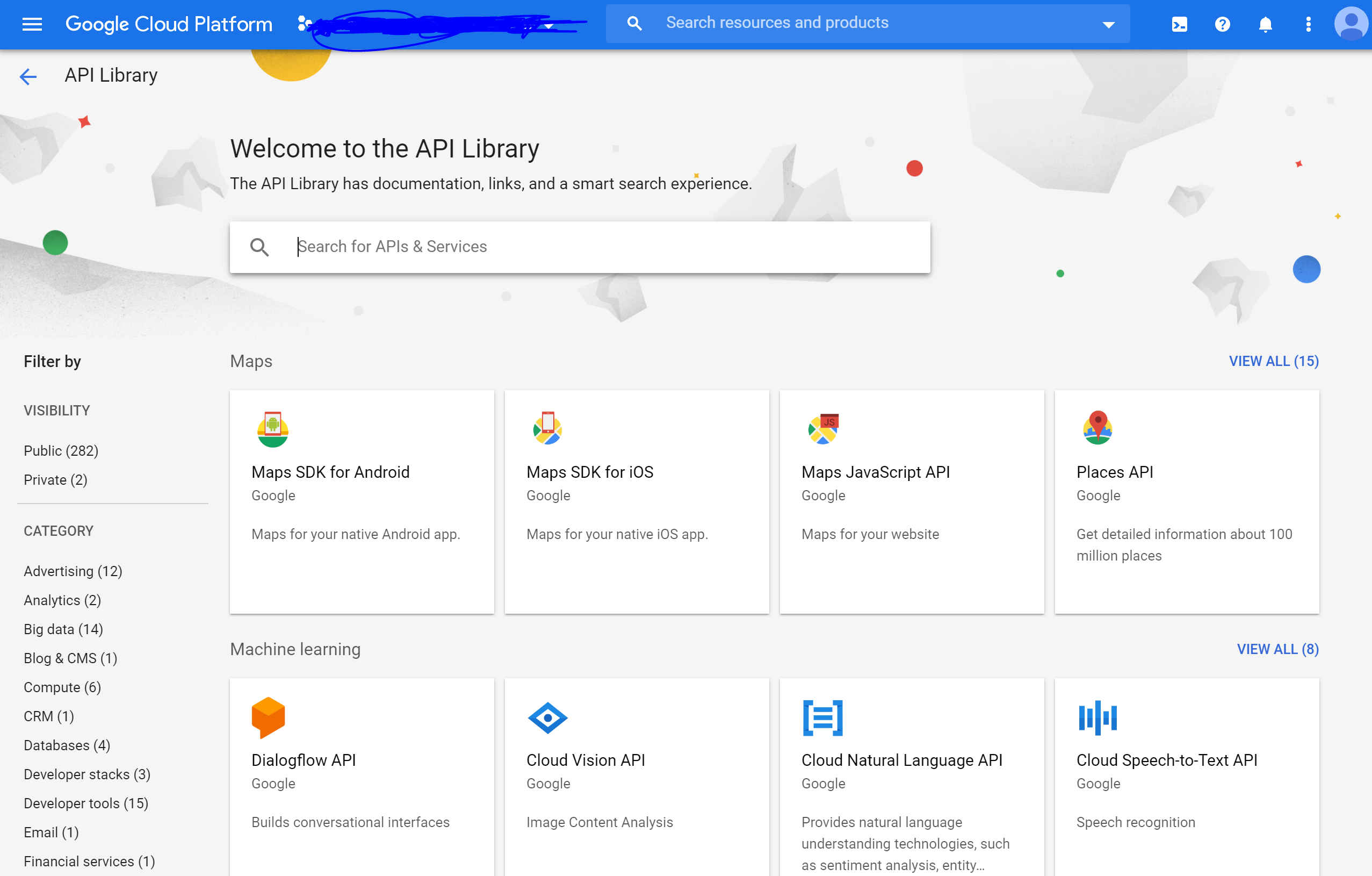 3. 같은 방법으로 Translate API, Speech API, and Natural Language APIs 를 활성화