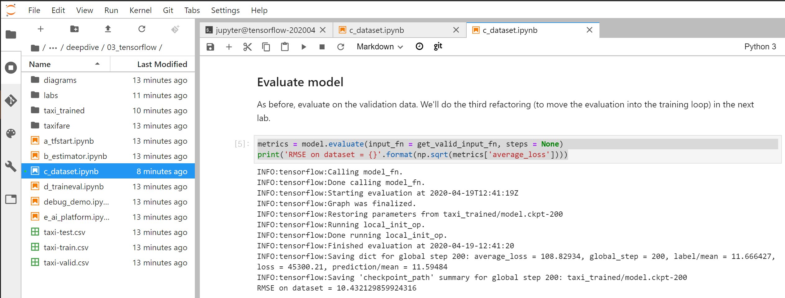 print('RMSE on dataset = {}'.format(np.sqrt(metrics['average_loss'])))