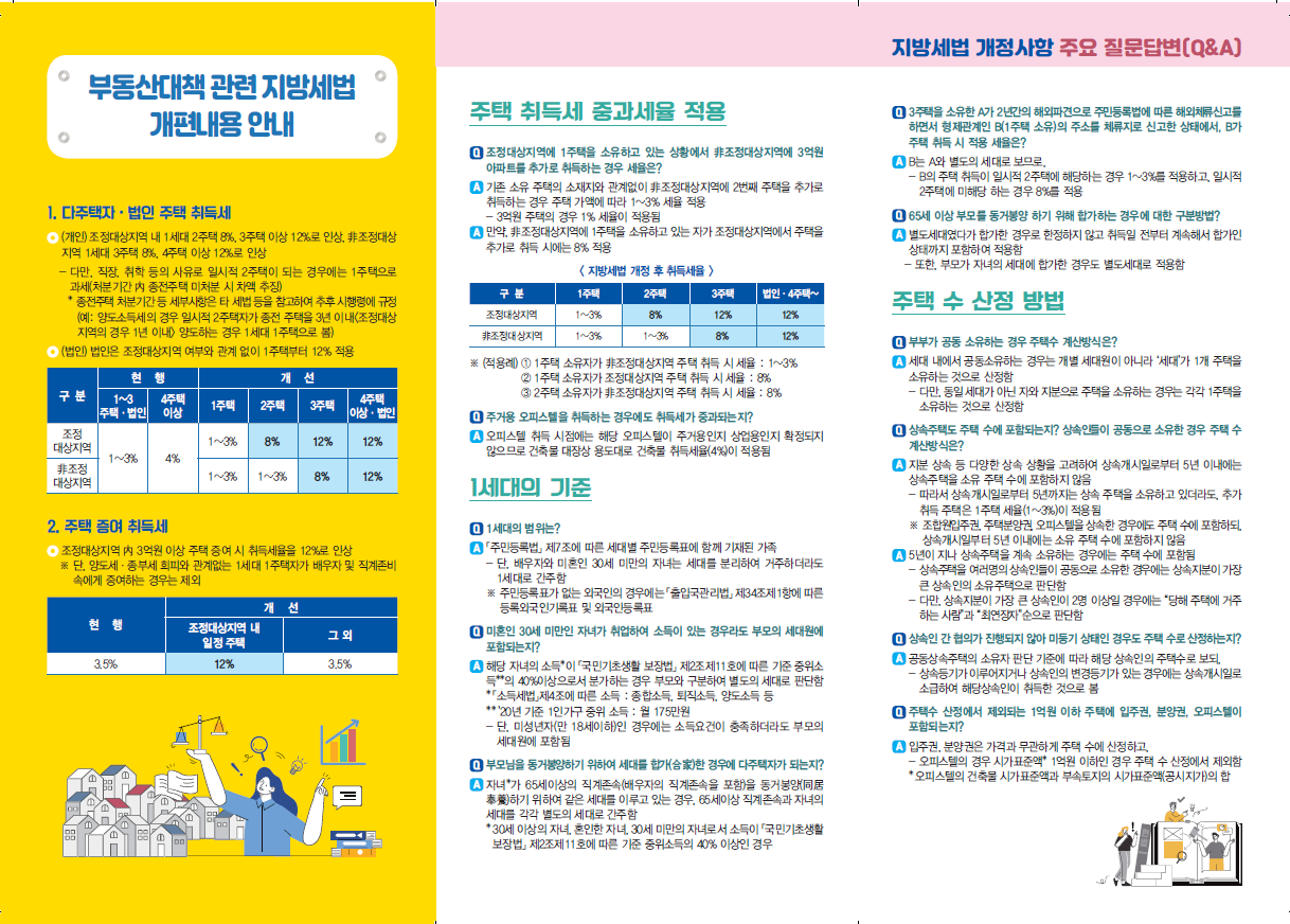 - 조정대상지역 1세대 3주택이상, 조정대상지역 외 지역 1세대 4주택이상 : 과세표준액(매매가) x 1.0%