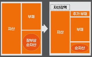 | 순자산 = 총자산 (-) 부채총계 (-) 실질가치가 없는 무형자산 (-) 퇴직급여 충당금 설정 부족액 / 우발부채 (-) 예상배당액 (±) 기타 순자산에 영향을 미치는 계정과목에 대한 수정항목 (장기미회수 채권, 인수자에게 가치없는 고정자산 등) |