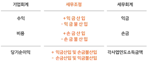 회계상 이익에서 차이를 조정하여 법인세법상 과세소득을 산출