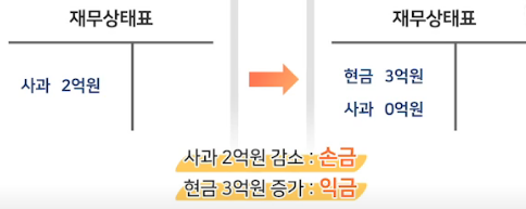 - 익금과 손금 사례 : 2억원에 구입한 사과를 3억원에 현금 받고 판매한 경우