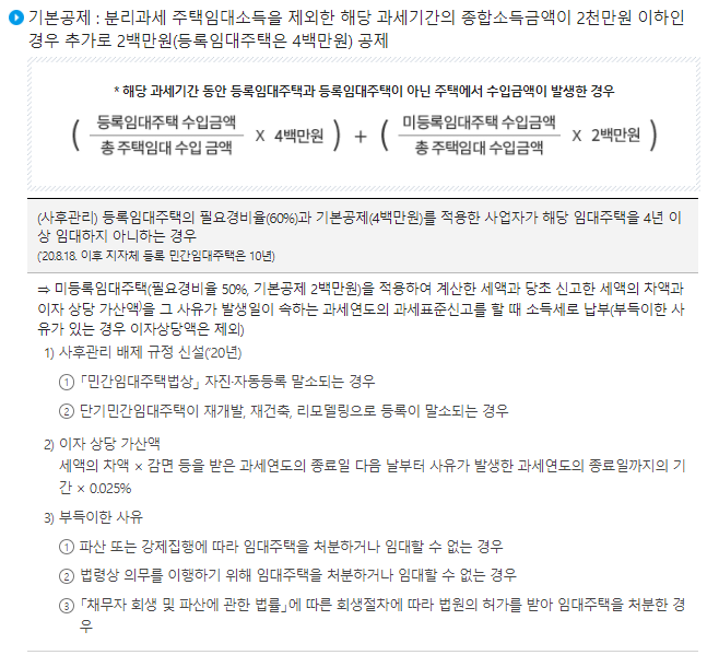 - ** 기본공제 : 미등록 2백만원→등록 4백만원