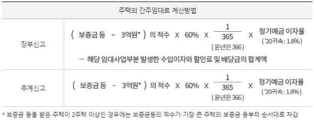 2020년 귀속 주택 보증금에 대한 간주임대료