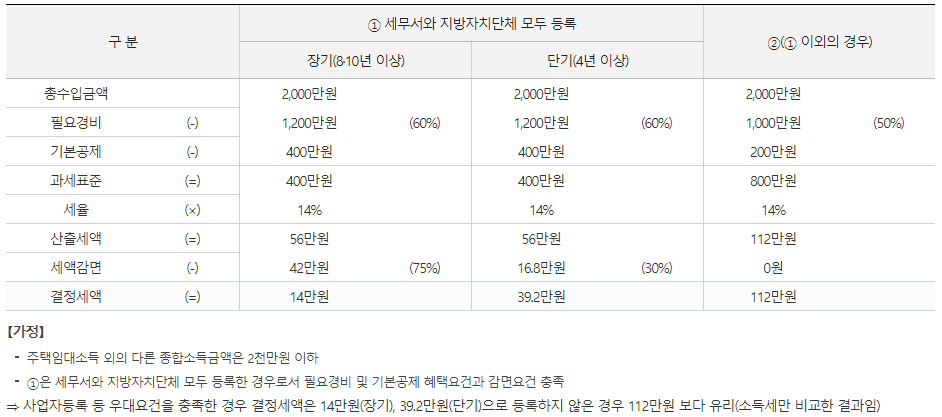 - * 필요경비율 : 미등록 50%→등록 60%