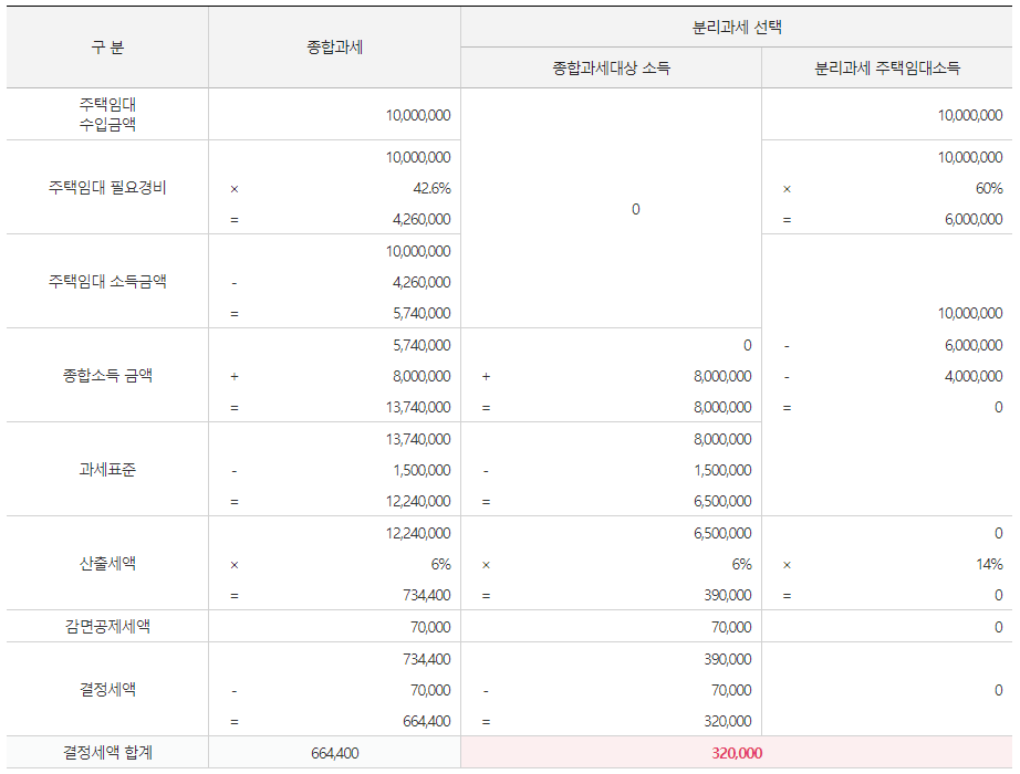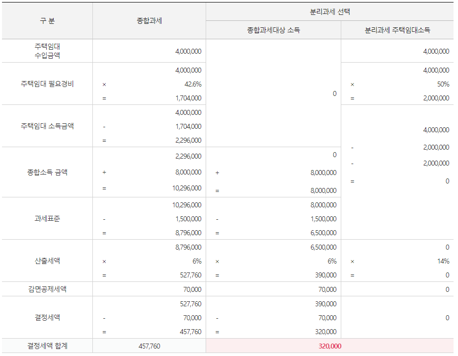 분리과세 소득 과세표준 계산