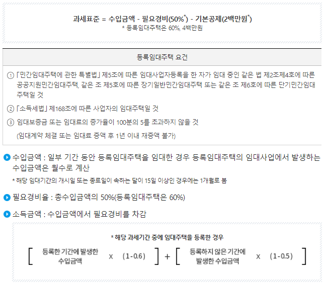 - * 필요경비율 : 미등록 50%→등록 60%