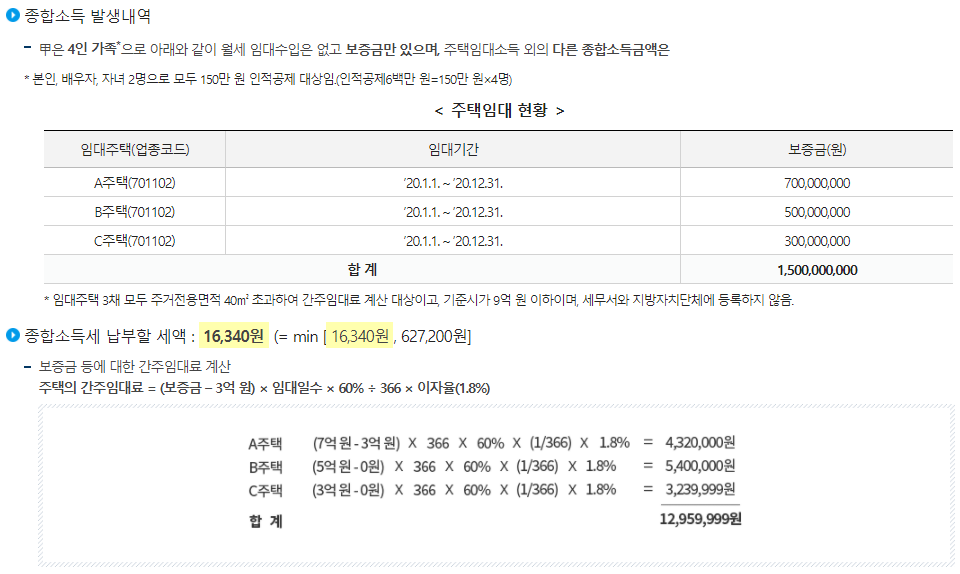 | 2주택 | - 모든 월세 수입 | - 모든 보증금 · 전세금 |