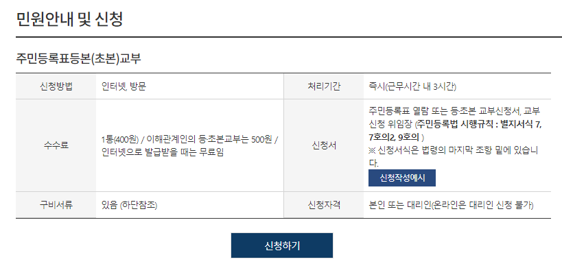 - 가까운 민원센터 방문 발급 (비용 발생)