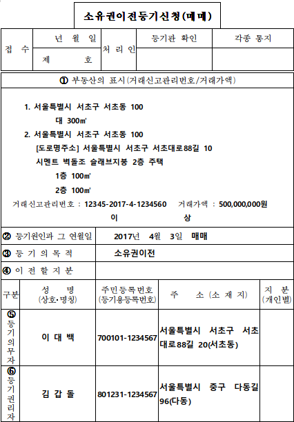 - 소유권이전등기신청(매매) 샘플