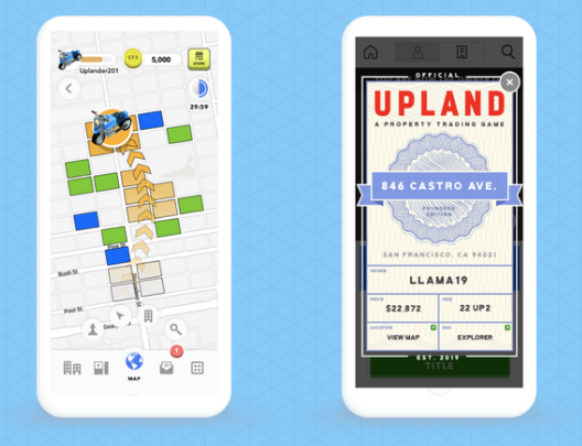 - 구글 지도에 등장하는 실제 부동산 정보를 바탕으로 메타버스에 참여하는 사람들끼리 실제 주소와 연결된 업랜드 상의 부동산을 사고파는 플랫폼.