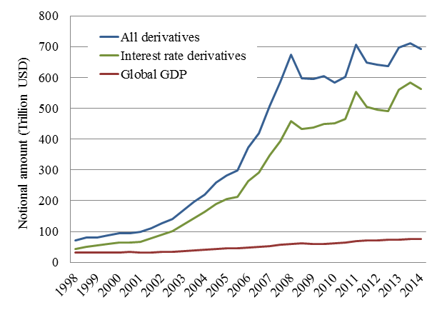 - 전 세계 파생상품 시장은 2007년 말 600조 달러 규모까지 성장 → 왝더독(Wag the Dog) 현상
