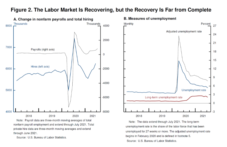 With vaccinations rising, schools reopening, and enhanced unemployment benefits ending, some factors that may be holding back job seekers are likely fading. While the Delta variant presents a near-term risk, the prospects are good for continued progress toward maximum employment. 11
