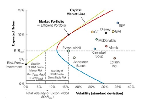 - 효율적 포트폴리오 기대수익률과 위험의 선형 관계를 나타내는 직선