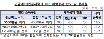 - 세액공제 한도 : 연 700만원