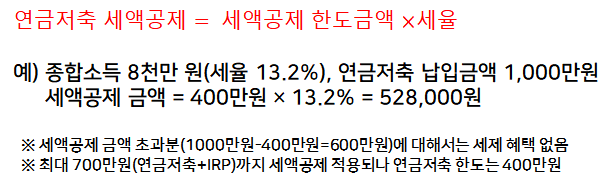 • 세제혜택(한도) : 세액공제 한도금액 × 세율