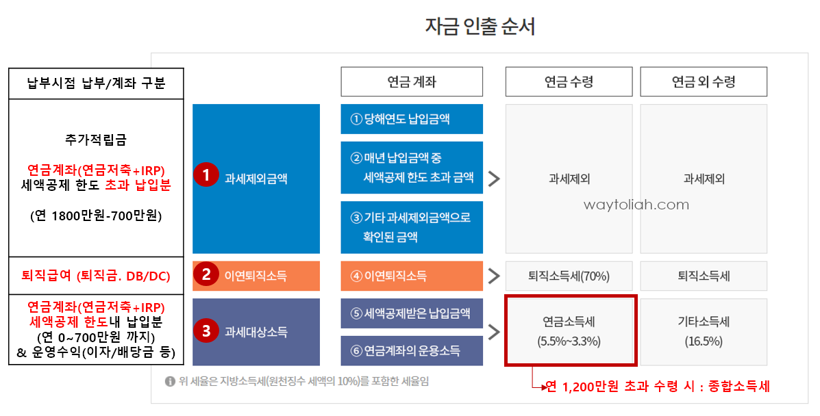 연금저축 자금 인출 순서 (금융감독원 통합연금 포털 자료 기반 재구성)