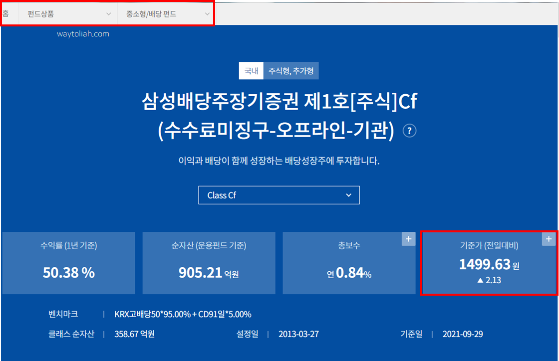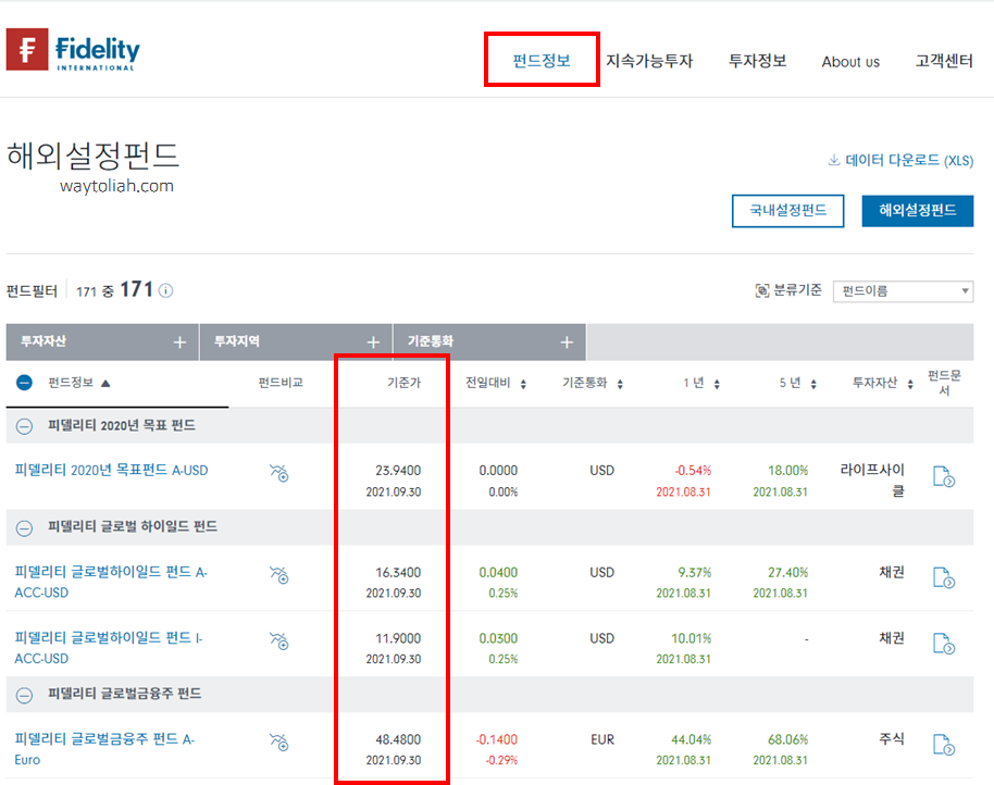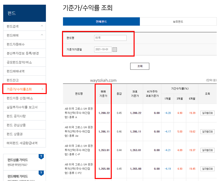 - 접속링크 : 펀드공시-펀드기준가격 및 등락-펀드기준가격 (kofia.or.kr)