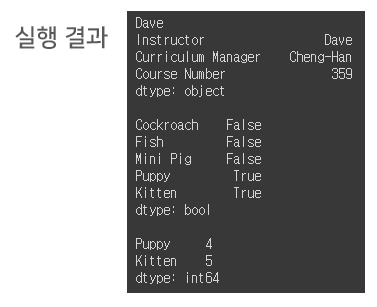 2) Pandas Series에서 특정 item을 선택하는 boolean 연산자 활용 예시
