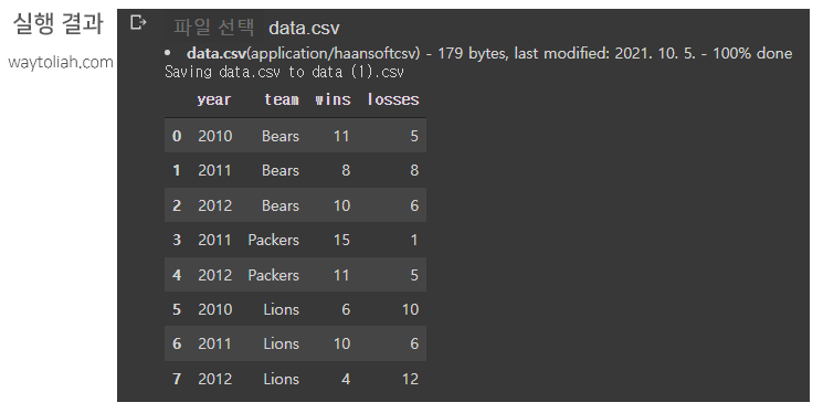 - 구글 colab에 csv 데이터를 업로드하고, DataFrame에 저장하기