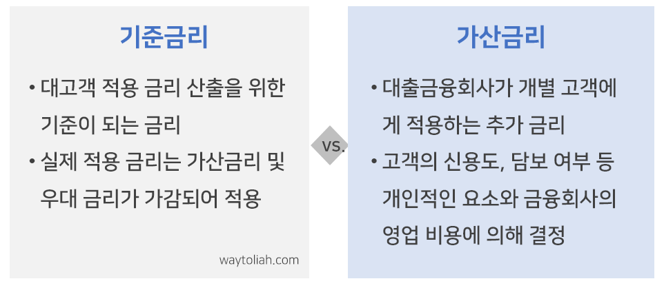 - 대출금리 = 프라임레이트 + 가산금리