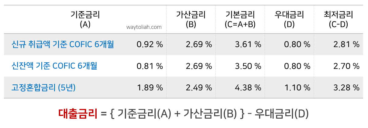 - 변동금리의 기준금리로는 현재 COFIC가 사용