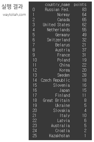 < 예제 > 행렬의 곱 : 각 국가별 획득한 메달 포인트의 합