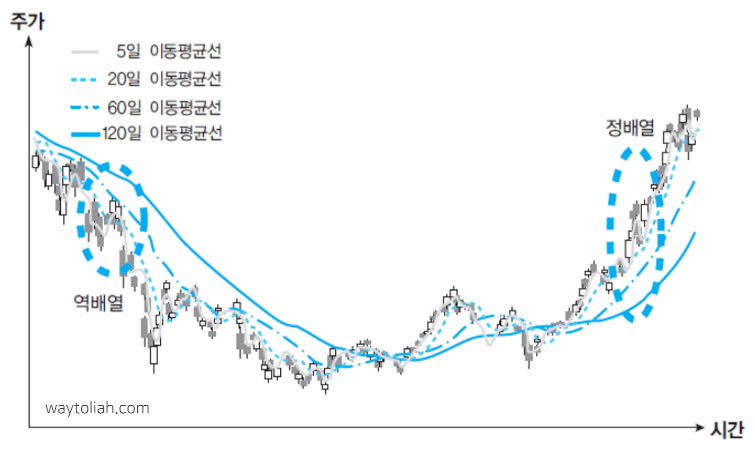 - 정배열 전환 : 주가 상승 추세로 전환 → 매수 신호