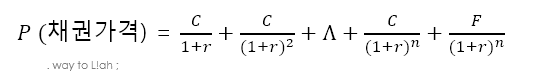 - 채권의 사장가격과 그 채권을 소유할 경우 얻을 수 있는 미래 현금흐름(액면이자 및 액면가)의 현재가치를 일치시켜 주는 할인율