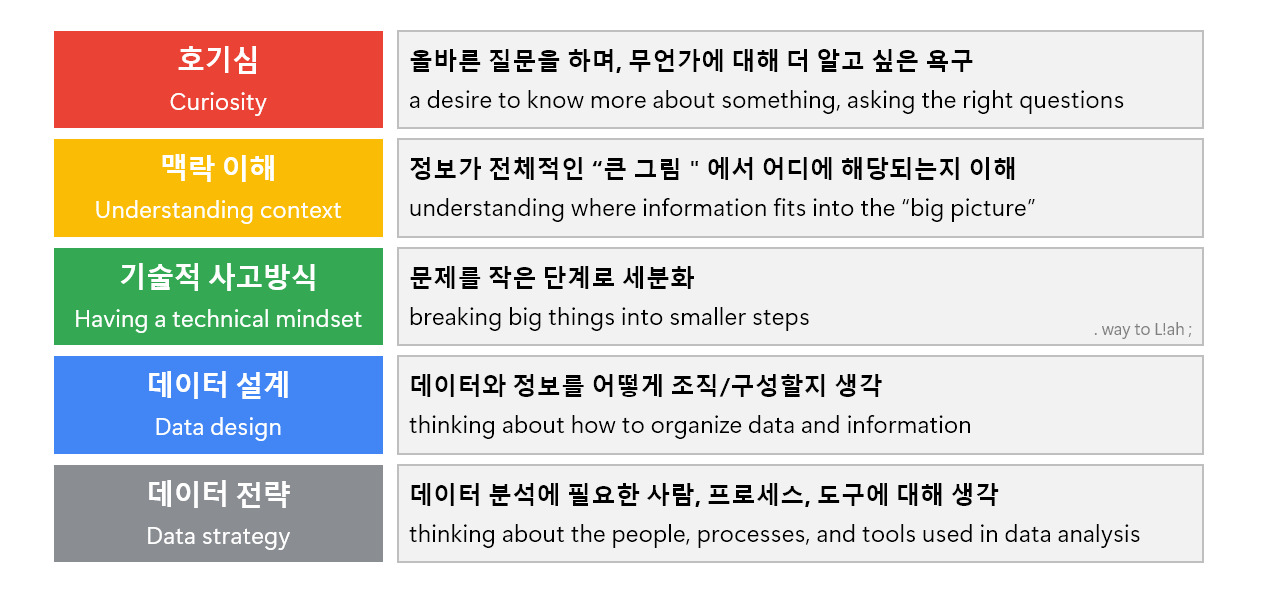 - 호기심 (Curiosity) : 올바른 질문을 하며, 무언가에 대해 더 알고 싶은 욕구