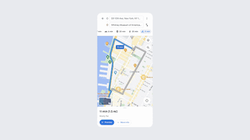 - 사용자가 목적지까지의 경로를 미리 볼 수 있는 새로운 "Immersive View for routes" 기능을 Google 지도에 도입한다.