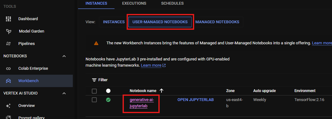 3. 사용자 관리형 노트북 (User-Managed NOTEBOOKS) 이동