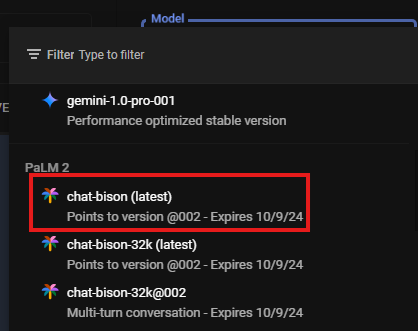 2. 모델에서 chat-bison(최신) 선택