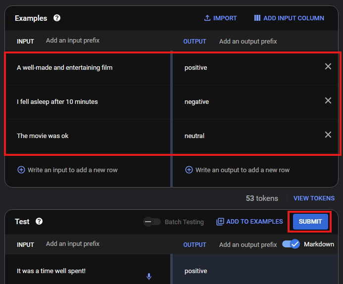 - 테스트 입력 필드에서 다음 프롬프트 작성 후 [ SUBMIT ]