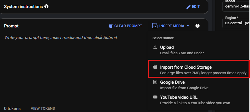 6. 미디어 삽입 > Cloud Storage 에서 가져오기 클릭