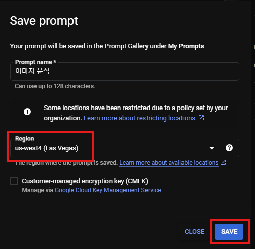 3. 프롬프트의 이름을 이미지 분석 으로 지정