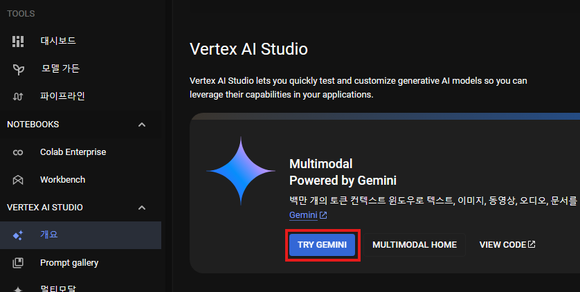 4. Vertex AI > Vertex AI Studio > 개요 로 다시 이동