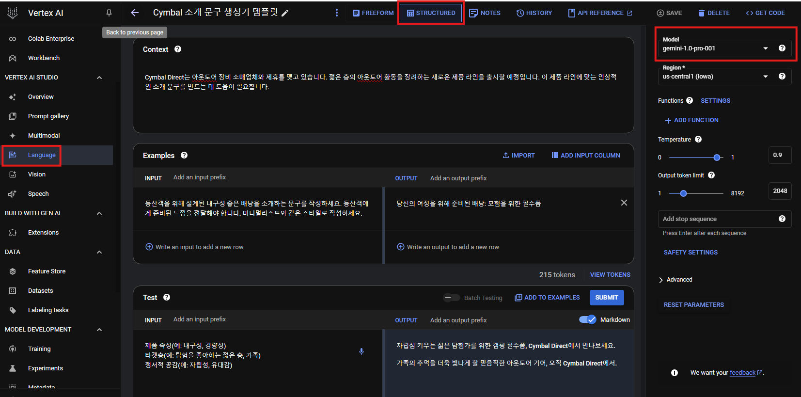 2. 구조화 모드 (Structured) 프롬프트 선택